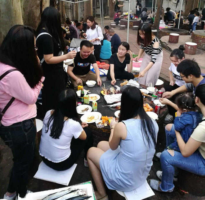 到達目的地后大家分成4桌落座,燒烤正式開始