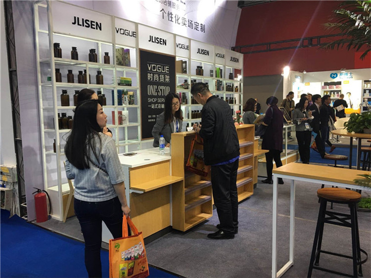 觀眾絡(luò)繹不絕地走進時尚貨架展位,有意向觀眾當場就留下了聯(lián)系方式