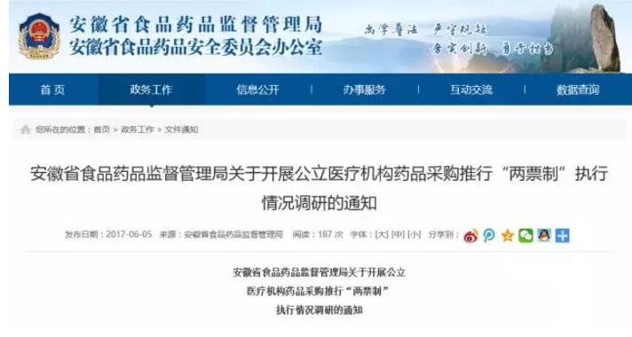 近期,包括醫(yī)改辦在內(nèi)的相關(guān)部門正在加緊搜集一線信息。而在昨天(6月5日),安徽藥監(jiān)局更是下發(fā)了兩票制執(zhí)行情況調(diào)研的通知。種種跡象表明,兩票制政策或有進(jìn)一步的調(diào)整、完善。