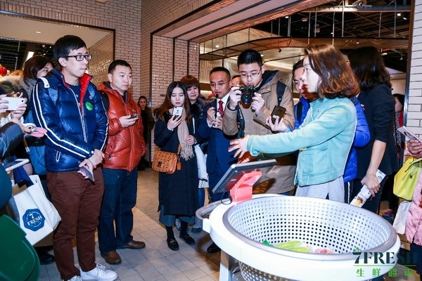 與傳統(tǒng)零售不同,7FRESH打通了線上與線下,在選品、采購、包裝加工以及商品損耗成本控制方面都自帶規(guī)?;?、系統(tǒng)化和協(xié)同化的優(yōu)勢。零售系統(tǒng)的智能化水平提升,也讓精準的銷售預測、高轉化率的商品推薦、合理的配送線路規(guī)劃成為了可能,而借助于各種科技產(chǎn)品的應用與齊備的餐飲服務,7FRESH在提供優(yōu)質(zhì)產(chǎn)品的同時也為消費者營造了一個更加便捷、舒適、個性化的消費體驗場景。