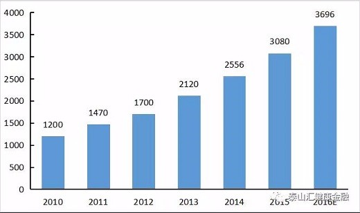 2011-2016年中國醫療器械市場規模(億元)