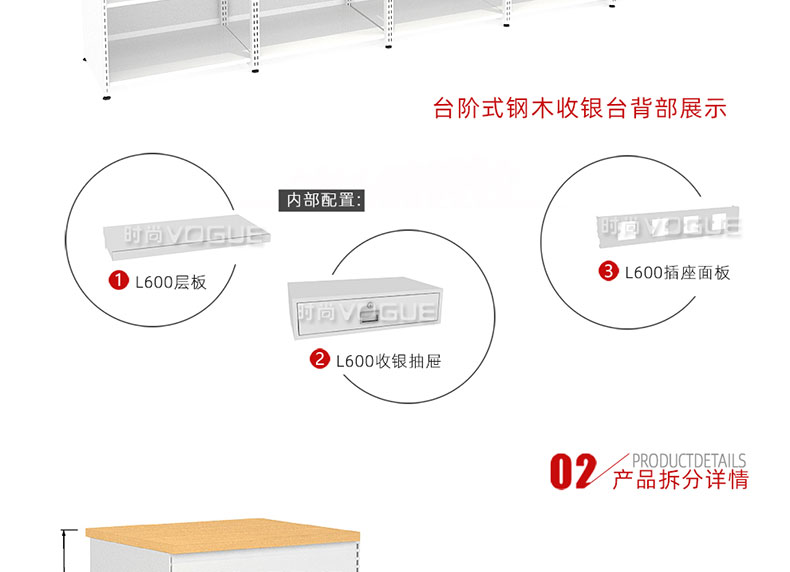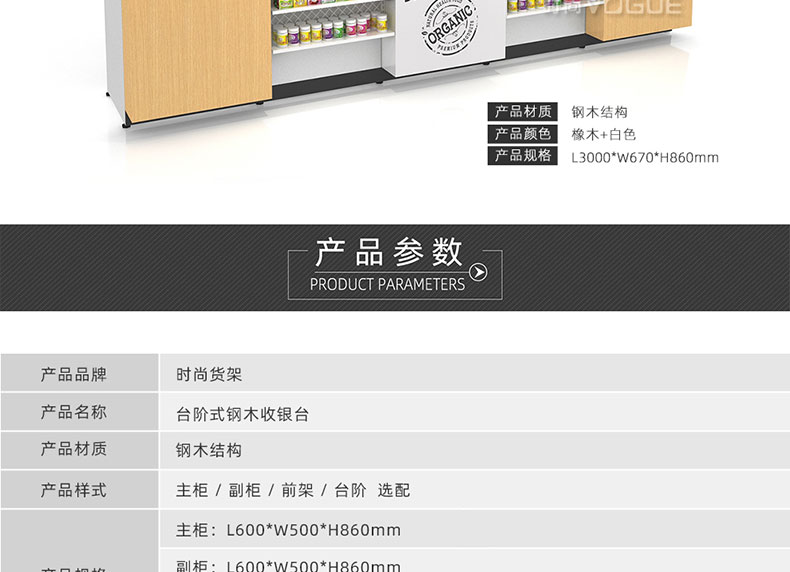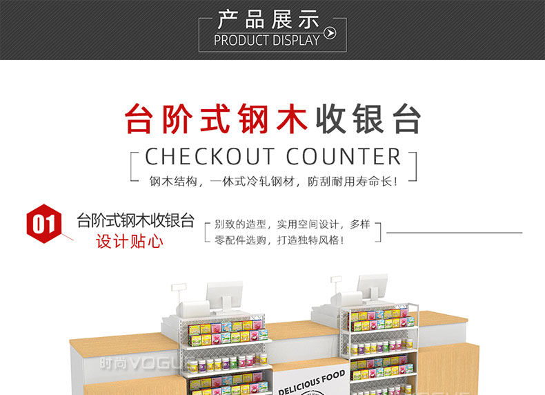 • 產品描述:這是時尚貨架針對母嬰店收銀區陳列最新推出的一款組合式收銀臺。