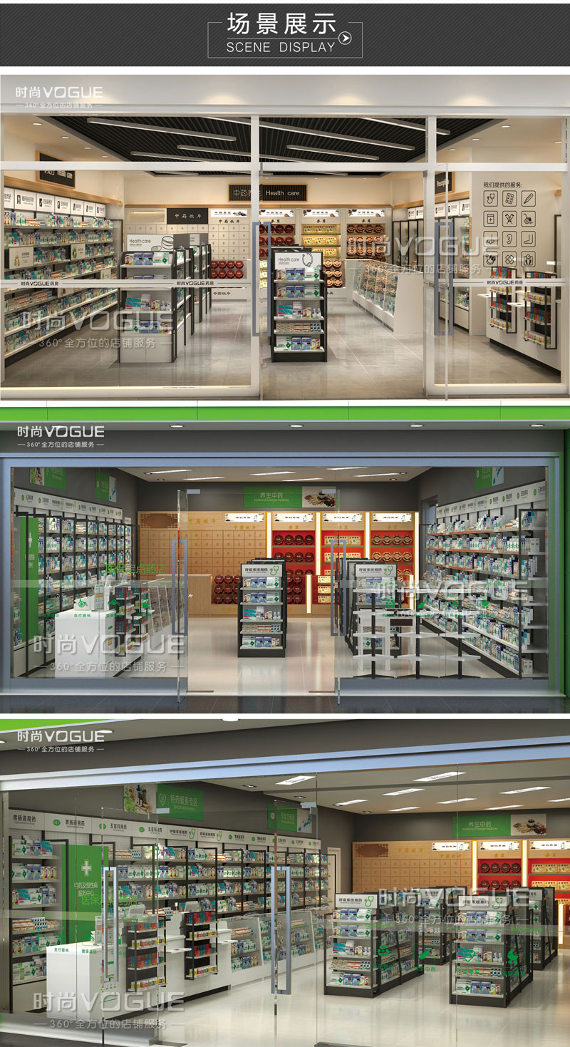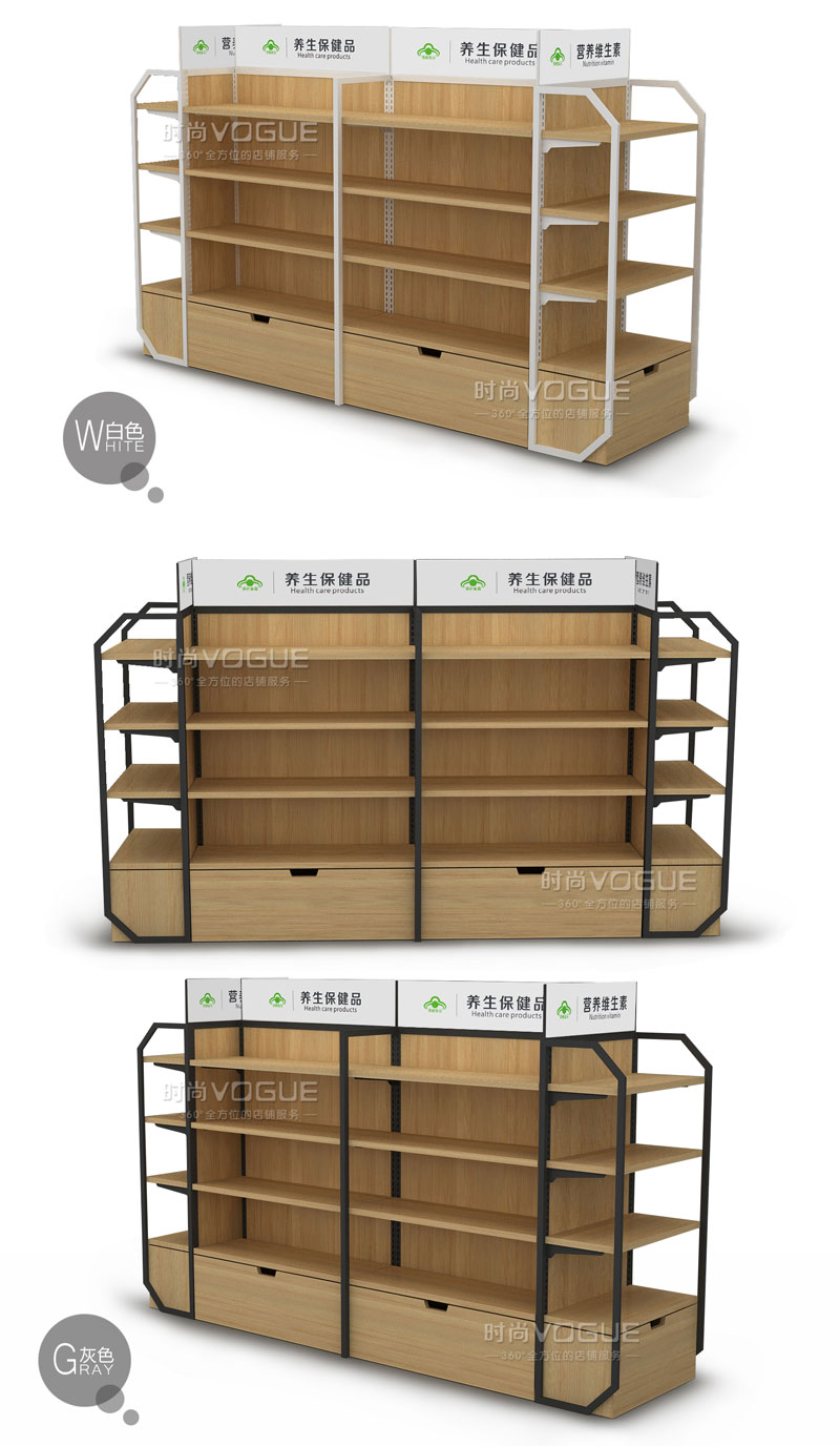【特點】開放式藥店貨架層板及背板采用更加環保的高密度環保木板,無毒無異味。再搭配冷軋鋼材質的側框,碰撞之間更突顯藥店高端的店面形象。