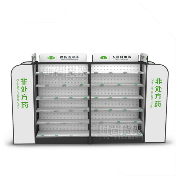 【產品名稱】洞洞板西藥貨架/藥店中島貨架/非處方藥雙面貨架