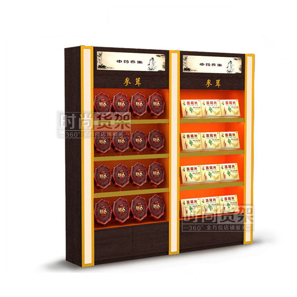 藥店貨架_參茸前柜(紫檀木紋)