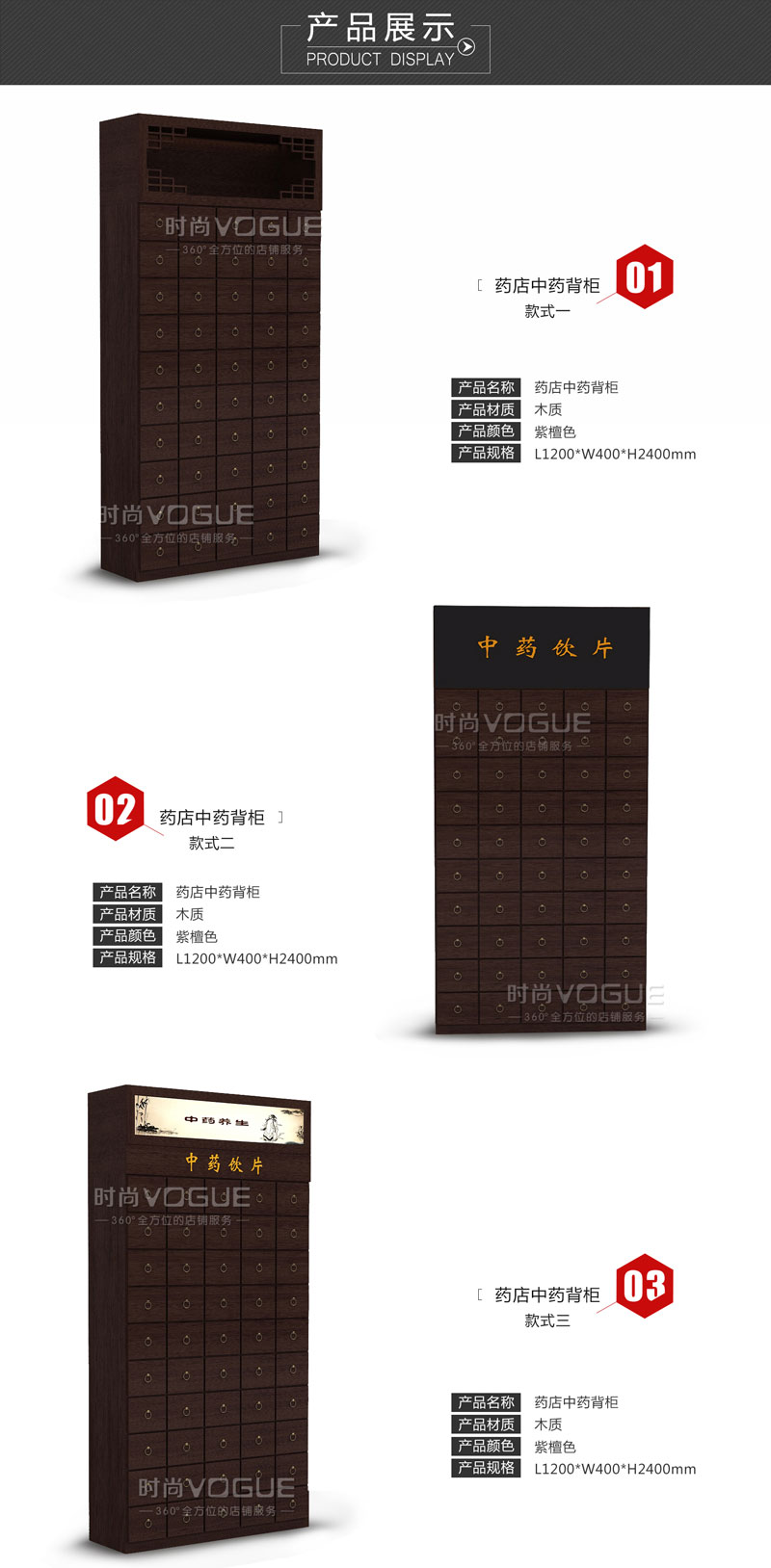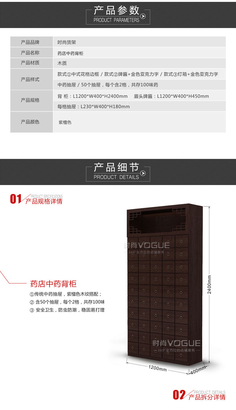 【產(chǎn)品名稱】紫檀木紋中藥柜/藥店木質(zhì)中藥柜/木紋中藥背柜