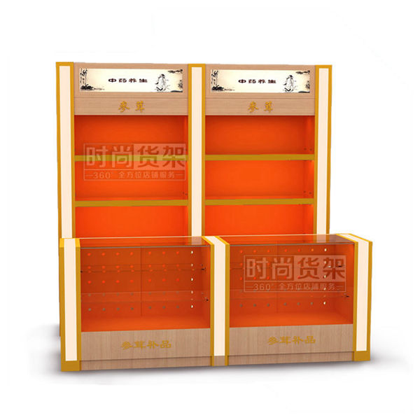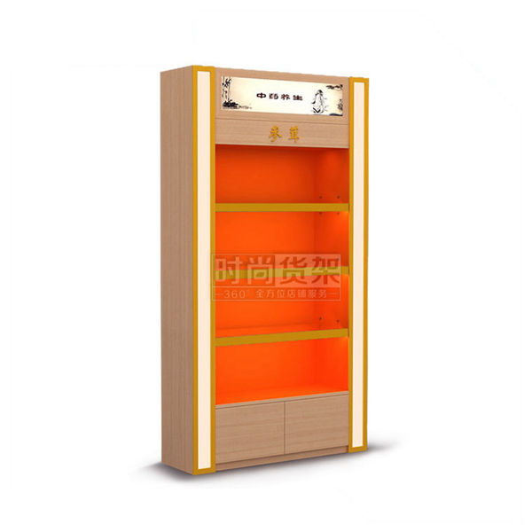 【產品名稱】紅櫻桃木紋參茸背柜/藥店參茸柜/高檔參茸展示柜