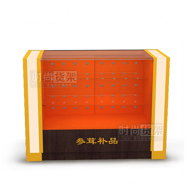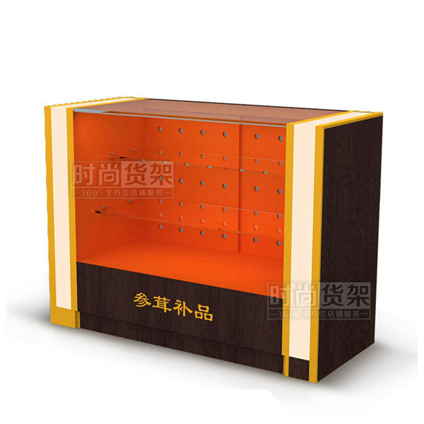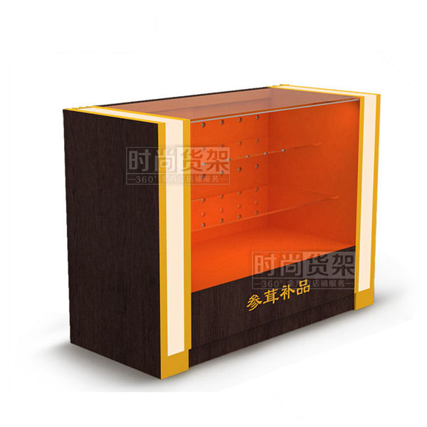 【產品名稱】玻璃參茸柜臺/紫檀木紋參茸前柜/藥店參茸玻璃柜
