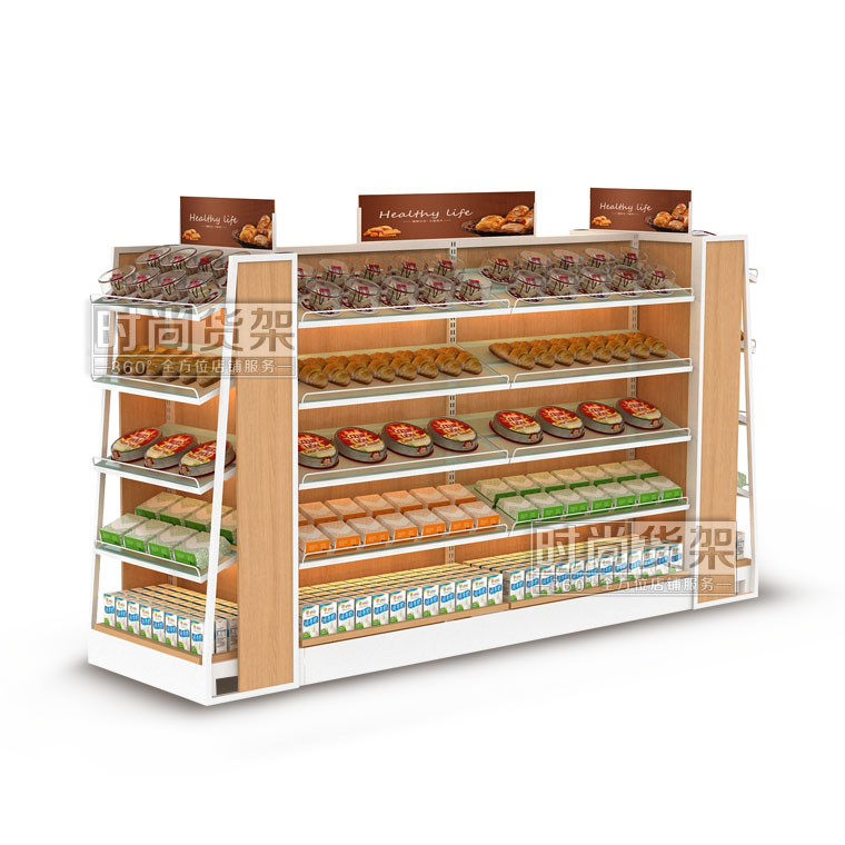 便利店貨架_單面食品 (木背板帶廣告牌)