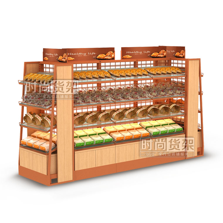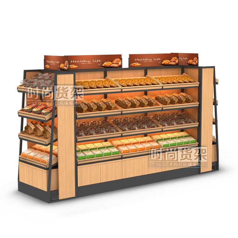 便利店貨架_面包區 (雙面木板帶地柜)