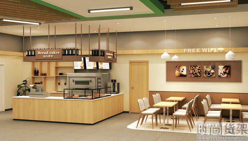 下面【時尚貨架】小編就介紹以下,時尚貨架為社區便利超市設計的一整套陳列方案。包含:商品陳列區、果蔬區、休閑區、收銀區。