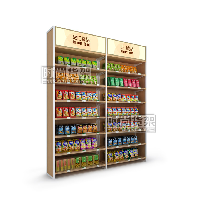 【產品名稱】全家便利店食品貨架/高檔進口食品展示架/木背板零食架