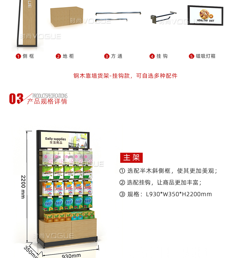 便利店貨架_靠前單面貨架(掛鉤款)