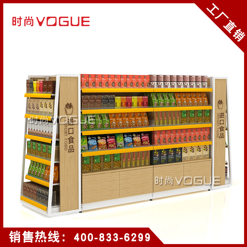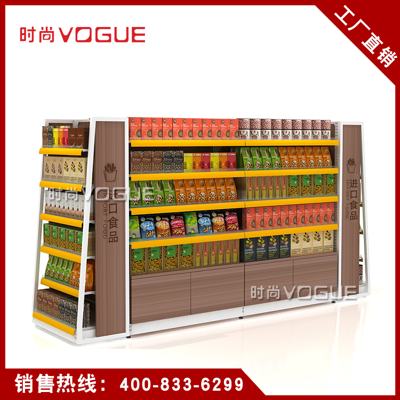 • 產品描述:本款木背板食品貨架是便利店貨架廠家最新推出的一款便利店貨架,底部地柜設計增加儲物功能。