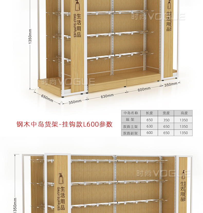 • 產品描述:本款木背板食品貨架是便利店貨架廠家最新推出的一款便利店貨架,掛鉤和層板可以互換,底部增加木地臺,更加美觀大氣。