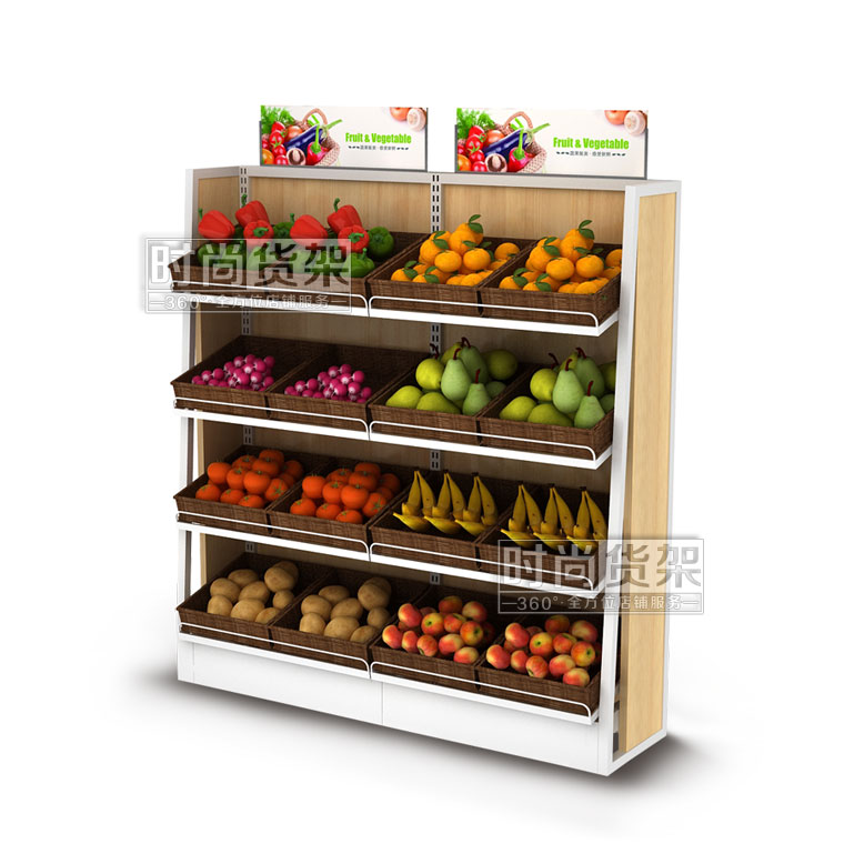 本款便利店蔬果架是由時尚貨架設(shè)計生產(chǎn)的一款木背板單面果蔬架。如需了解其他款式,可以選擇便利店網(wǎng)背板果蔬架,果蔬生鮮促銷籃等便利店果蔬區(qū)貨架。