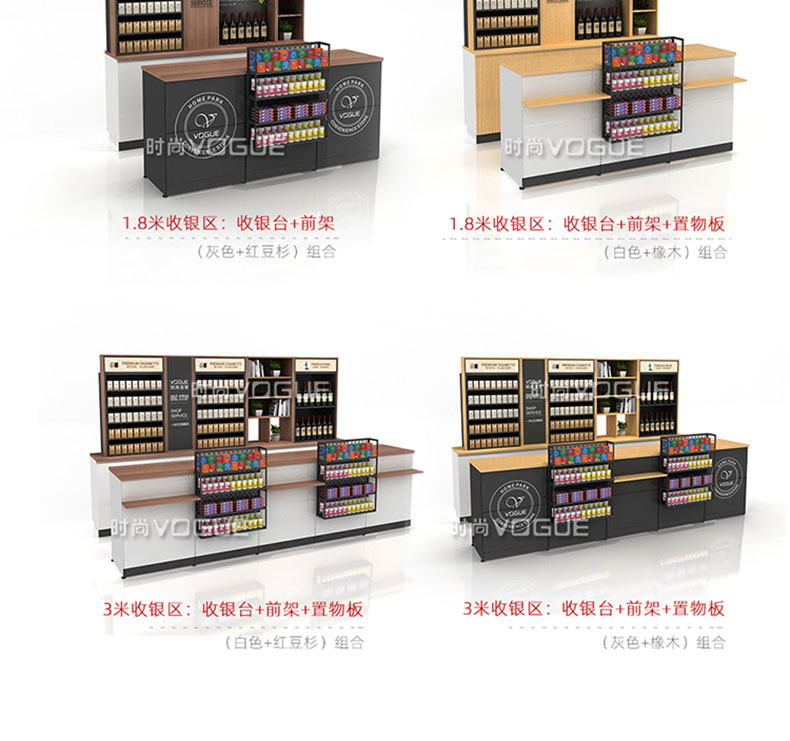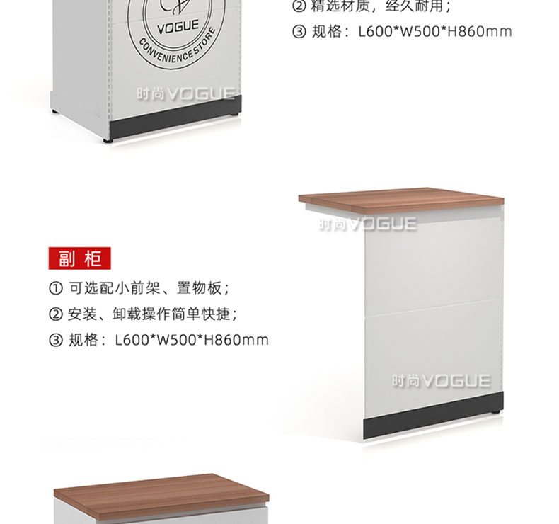 【特點】組合形式,滿足不同收銀區需求;精選材質使用壽命長;擴展側面空間增強收銀臺功能