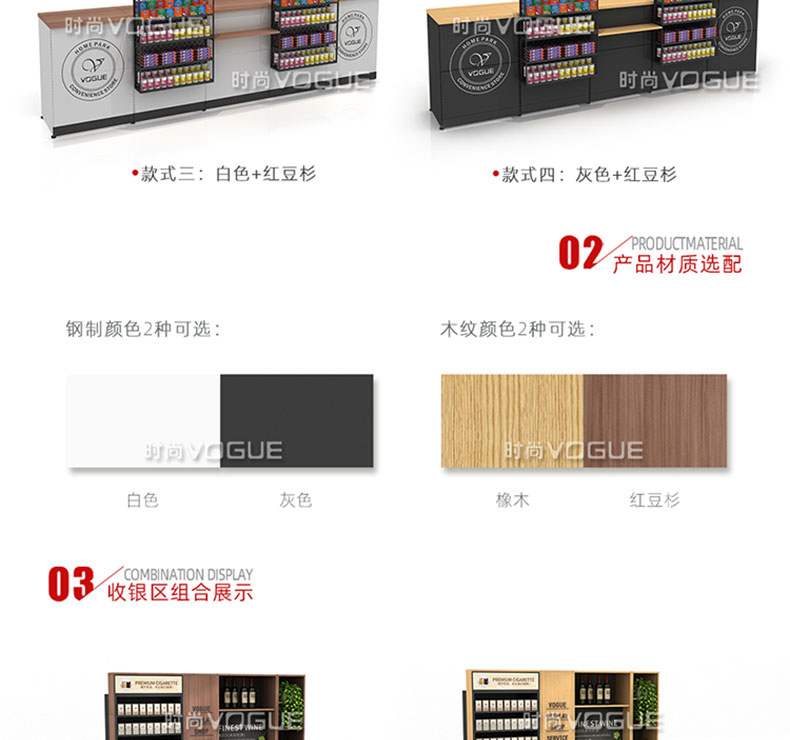 【樣式】主柜+轉角柜+側柜+后柜,可配置小前架、置物板、收銀抽屜