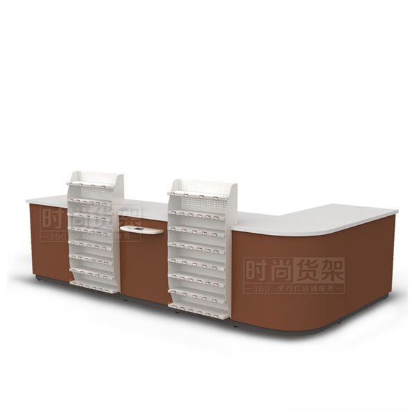 【描述】此款便利店收銀臺是時尚貨架專為便利超市設計的一款多功能轉角收銀臺。便利店收銀吧臺立柱和四面均采用優質鋼板,堅固耐用。經過表面處理,可有效抵抗液體腐蝕,采用白色、灰色、咖啡色三種配色,搭配米白色臺面顯得更美觀。臺面使用優質三胺板,做工精細、不割手,具有耐磨,耐燙,耐腐蝕等特性。收銀吧臺采用組合式設計,可以組合成需要的長度,如2.4米收銀臺,1.8米收銀臺等,有很強的實用性。