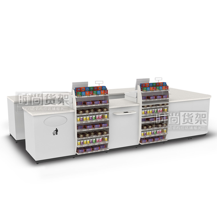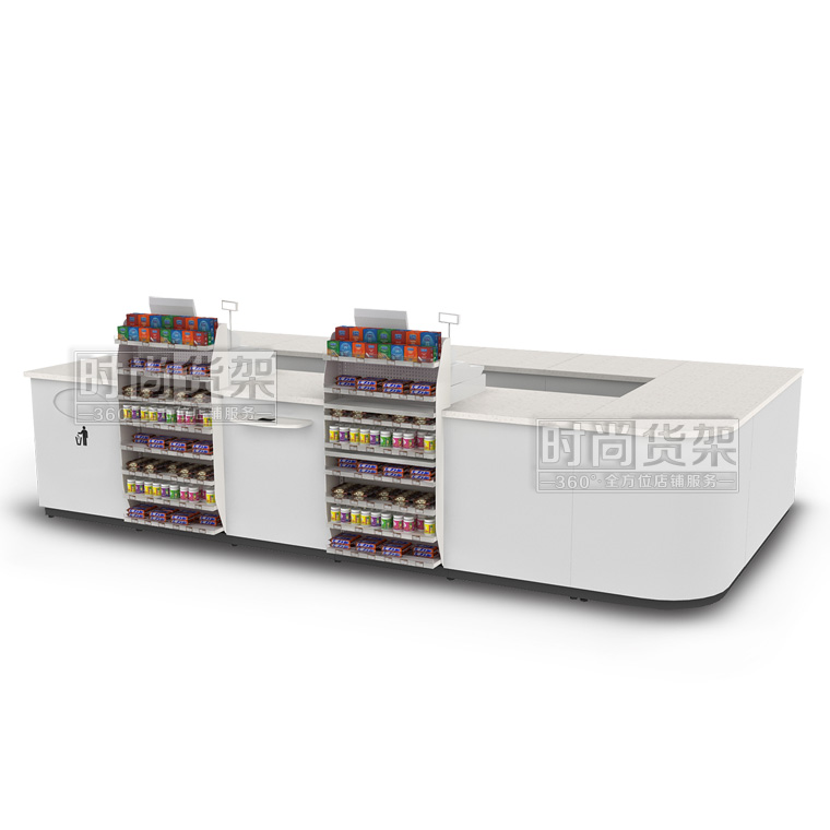 本款便利店收銀臺是時尚貨架為連鎖便利店設計生產的一款多功能組合式便利店收銀臺,如需了解更多小型便利店收銀臺,請咨詢客服人員!