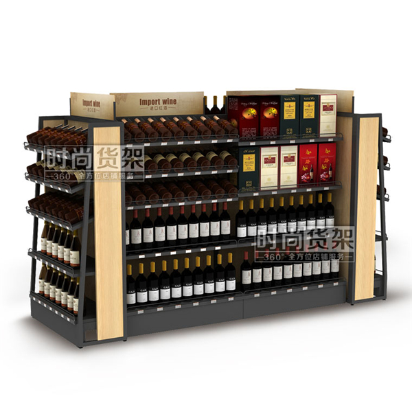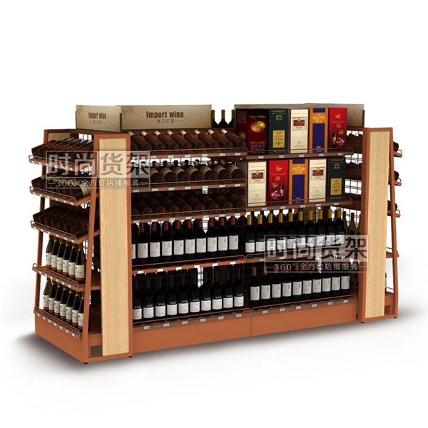超市貨架_紅酒貨架 (木背板雙面)