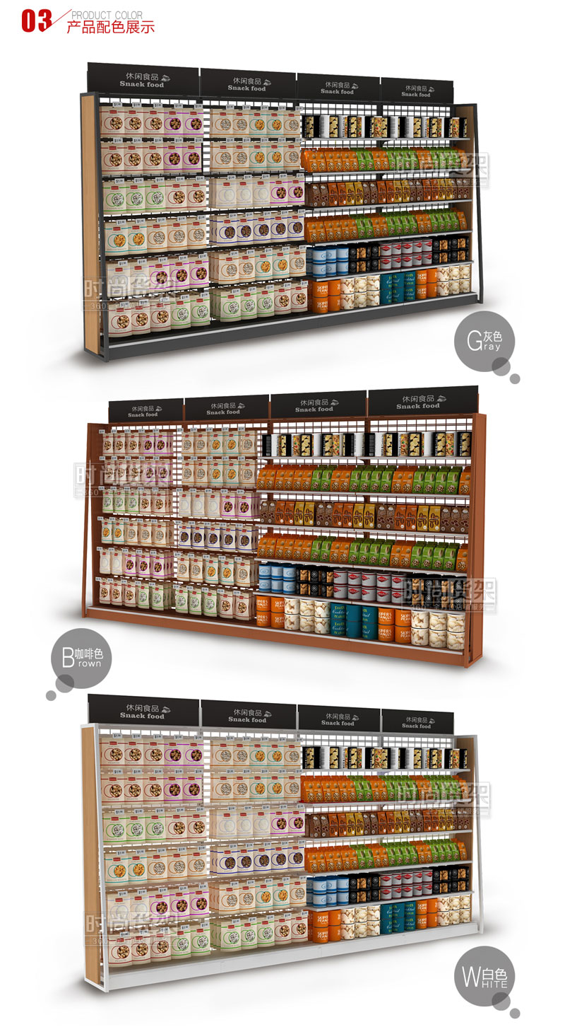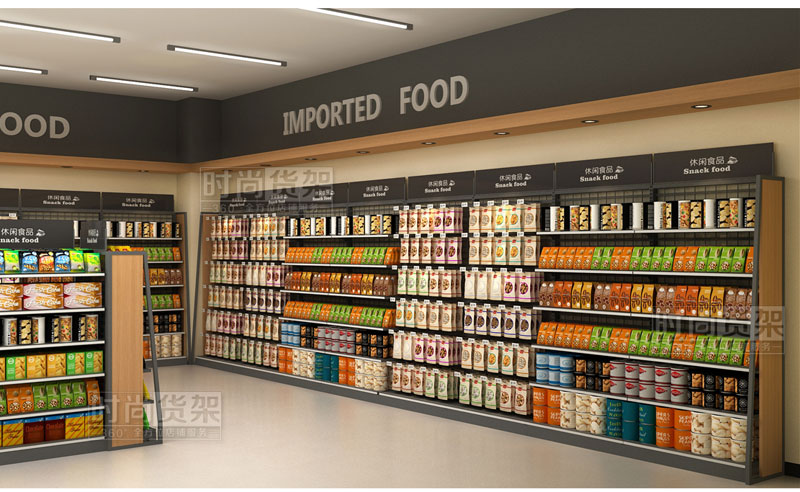 這是時(shí)尚貨架專為超市食品區(qū)打造的超市單面零食貨架,想了解超市雙面食品貨架請(qǐng)點(diǎn)擊:http://www.nb-hs.com/supermarket/spzsq/103.html。