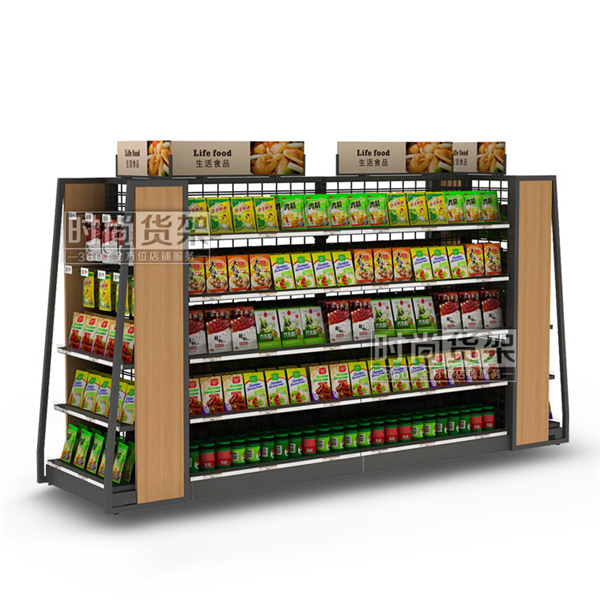 - 產(chǎn)品描述:此款生活食品貨架是深圳貨架廠——時(shí)尚貨架專為超市生活用品區(qū)打造的一款具有超強(qiáng)承重性的雙面貨架
